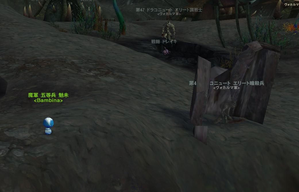 そのあたりの岩に飛び乗ってタゲを切り